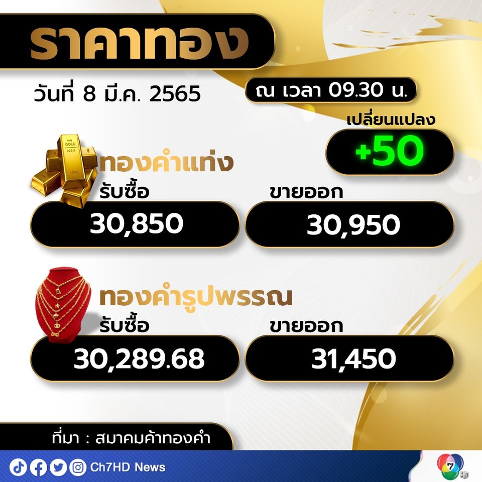 เปิดตลาดราคาทองคำเช้านี้ ขึ้นต่อ 50 บาท - Ch7.com